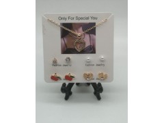 Collar de corazón con brillos y 4 pares de aros súper combinables 0024