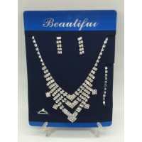 set de collar, aros y pulsera con brillos plateados 0026