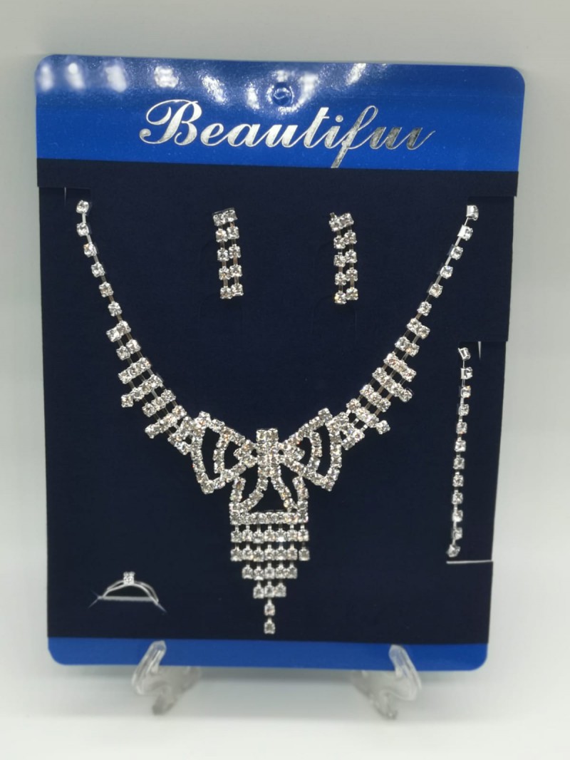 set de collar, aros y pulsera con brillos plateados 0026
